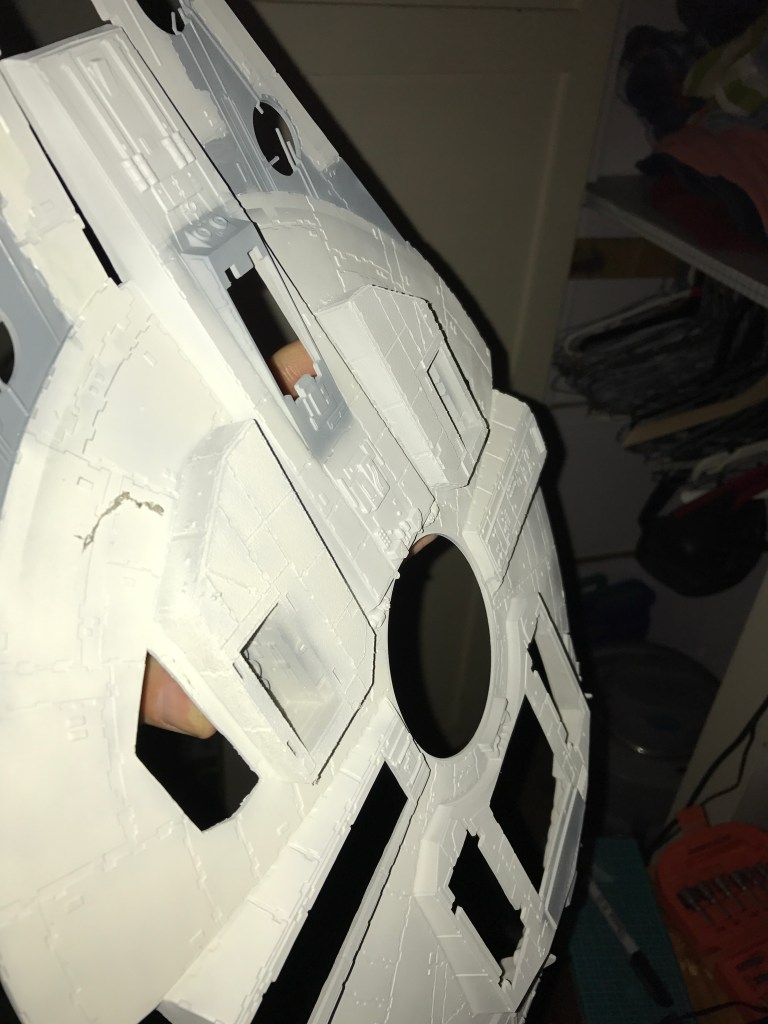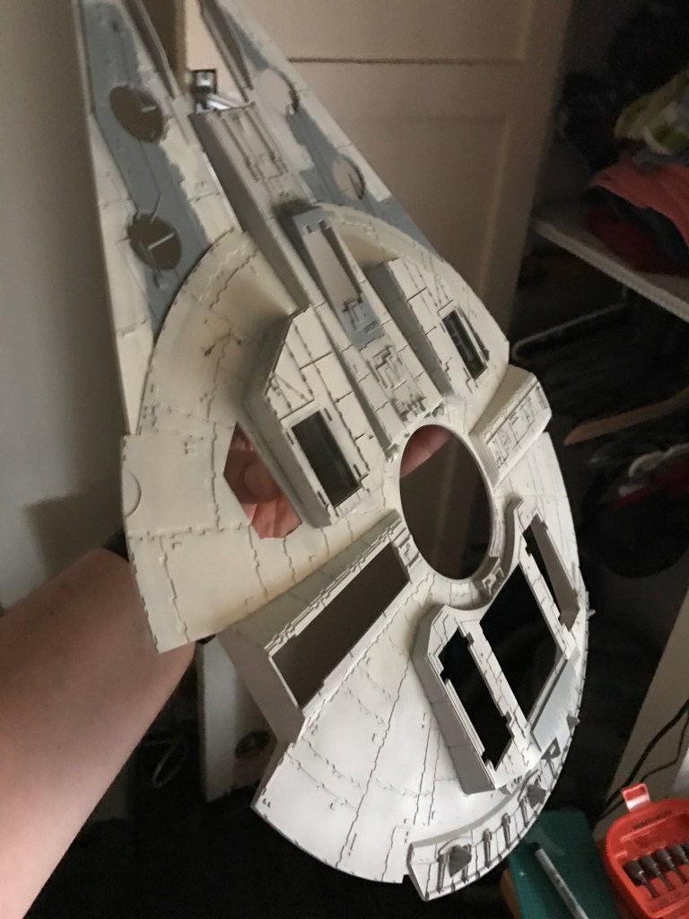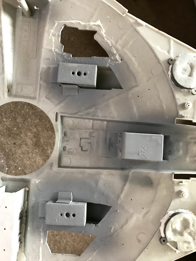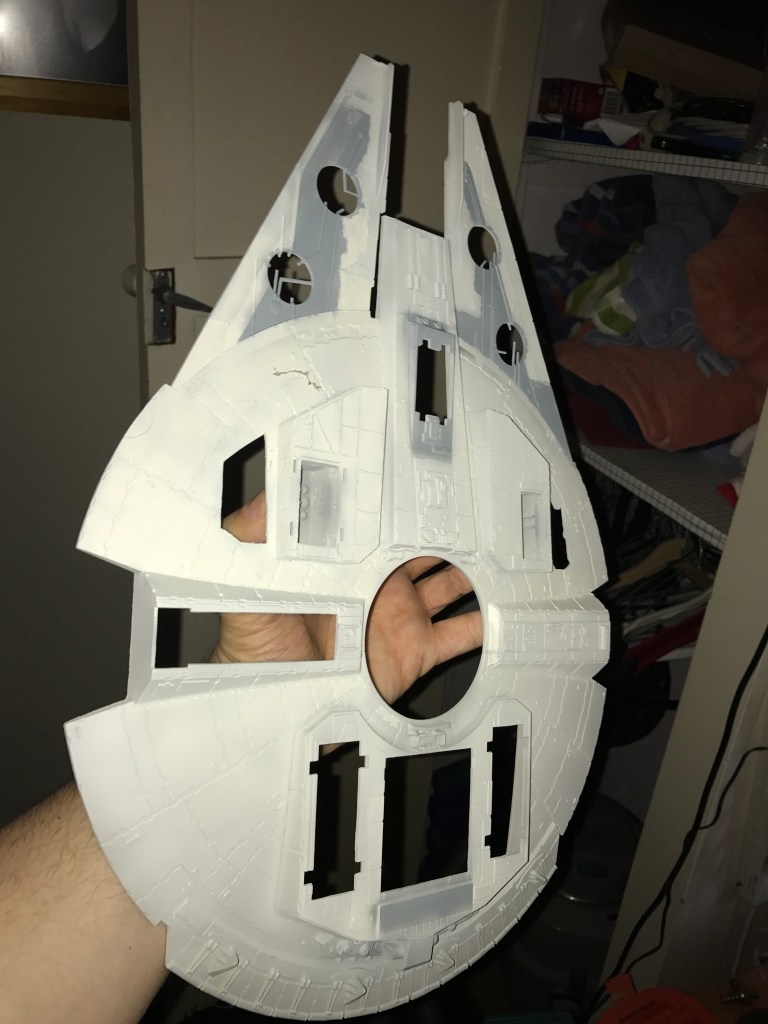 Because the MPC kit was based on the original “Tripedal” Falcon, any attempt to update to a newer version requires a fair amount of surgery to the lower hull.